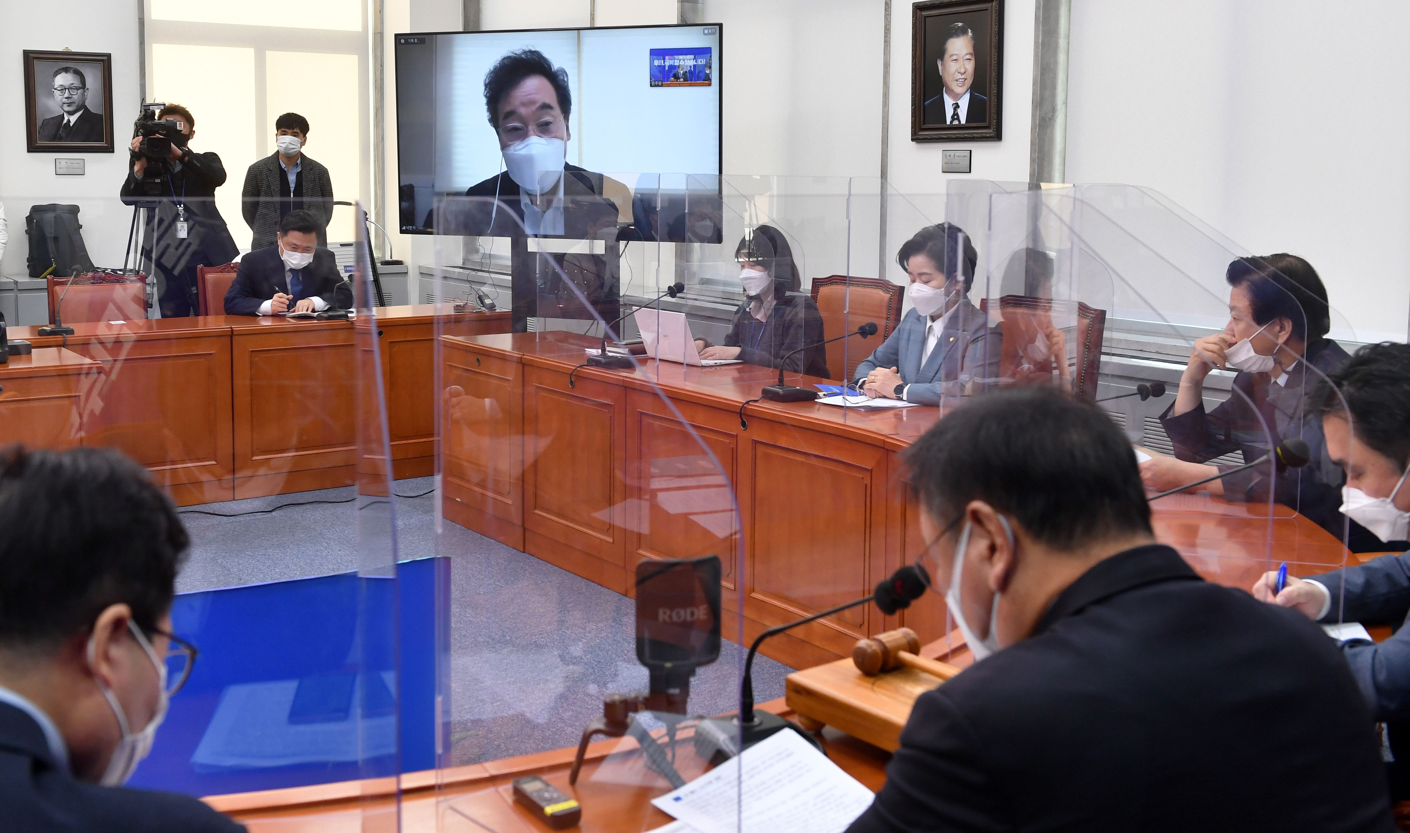 27일 오전 국회에서 열린 최고위원회의에서 이낙연 더불어민주당 대표가 화상으로 모두발언을 하고 있다. /국회사진기자단 |