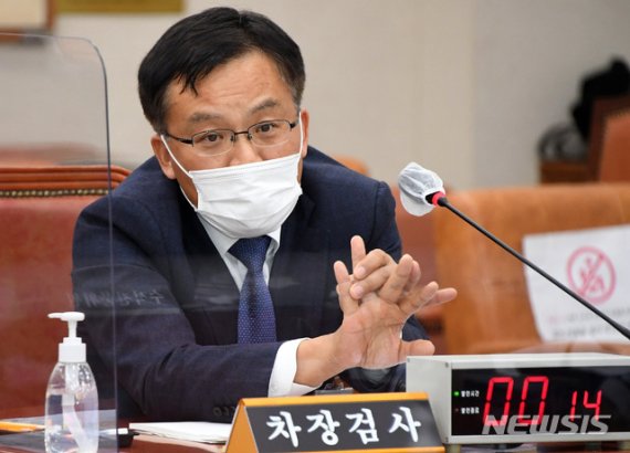 조남관 대검찰청 차장검사가 지난달 22일 서울 여의도 국회에서 열린 법제사법위원회의 대검찰청에 대한 국정감사에서 전주혜 국민의힘 의원 질의에 답하고 있다. 사진=뉴시스 |