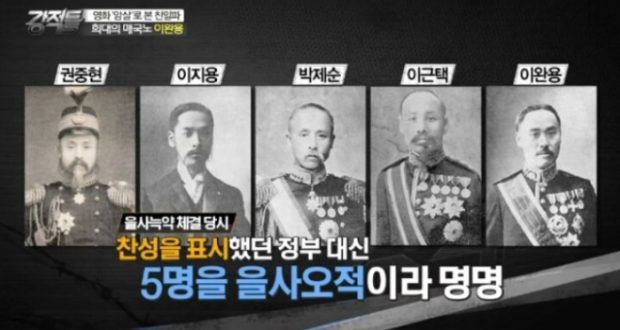 1905년 을사늑약을 주도한 을사오적. 왼쪽부터 농상대신 권중현, 내부대신 이지용, 외부대신 박제순, 군부대신 이근택, 학부대신 이완용./TV조선 |