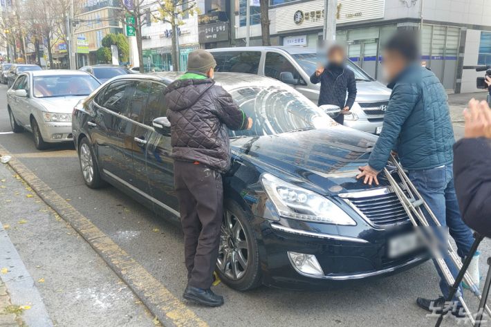 하지만 전씨는 법정 출석 당시 타고 온 에쿠스 차량 대신 카니발 차량으로 바꿔 타고 떠나면서 봉변은 피할 수 있었다.