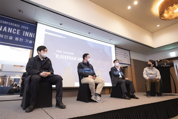 지난달 27일 열린 `더 콘퍼런스 2020`에서 패널들이 토론하고 있다. 이날 콘퍼런스에서는 전통 금융권과 암호화폐, 블록체인 기업들이 혁신 전략을 모색했다. [사진 제공 = 디스트리트] |