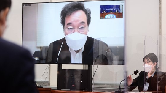 더불어민주당 이낙연 대표가 2일 오전 서울 여의도 국회에서 열린 최고위원회의에 화상으로 참석, 발언하고 있다. 연합뉴스 |