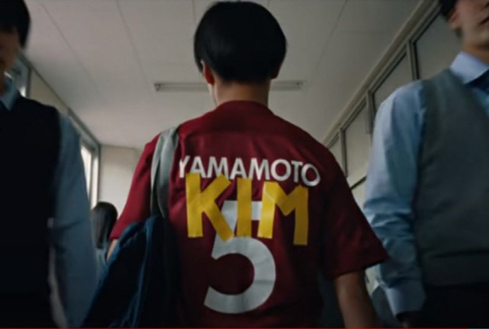 사람들의 차가운 시선에 위축된 모습을 보이기도 하지만 영상 마지막 부분에는 원래 적혀있던 'YAMAMOTO'란 일본식 성 위에 'KIM'이라고 당당히 한국식 성을 덧붙여 옷을 입은 장면이 나온다.