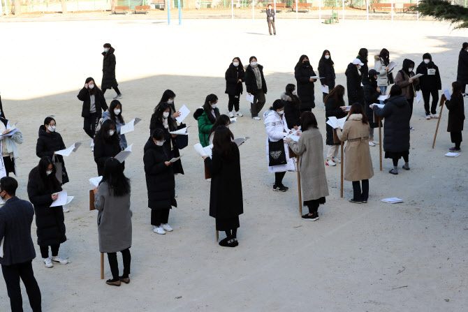 2021학년도 대학수학능력시험(수능) 예비 소집일인 2일 오후 대전시 서구 갈마동 한밭고등학교에서 수험생들이 주의사항을 듣고 있다.(사진=연합뉴스) |