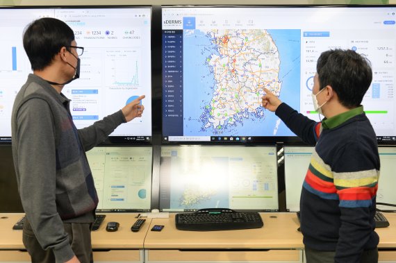 ETRI 연구진이 실시간으로 전국에 분산된 태양광 에너지자원을 모니터링하고 있다. ETRI 제공 |