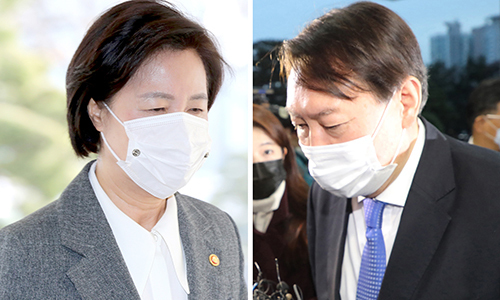 추미애 법무부 장관(왼쪽)과 윤석열 검찰총장. 연합뉴스 |