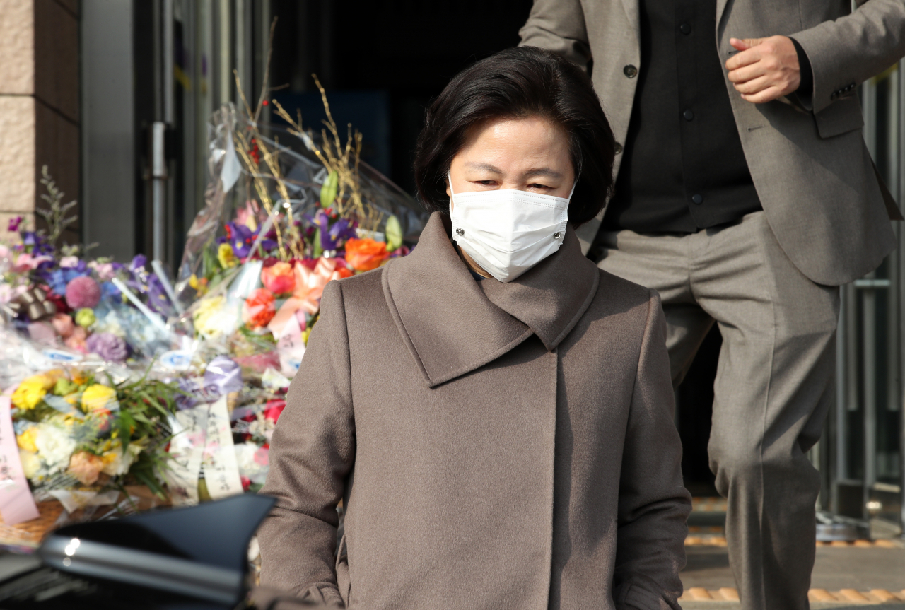 추미애 법무부 장관이 7일 오전 정부과천청사 법무부를 나서고 있다. [연합] |