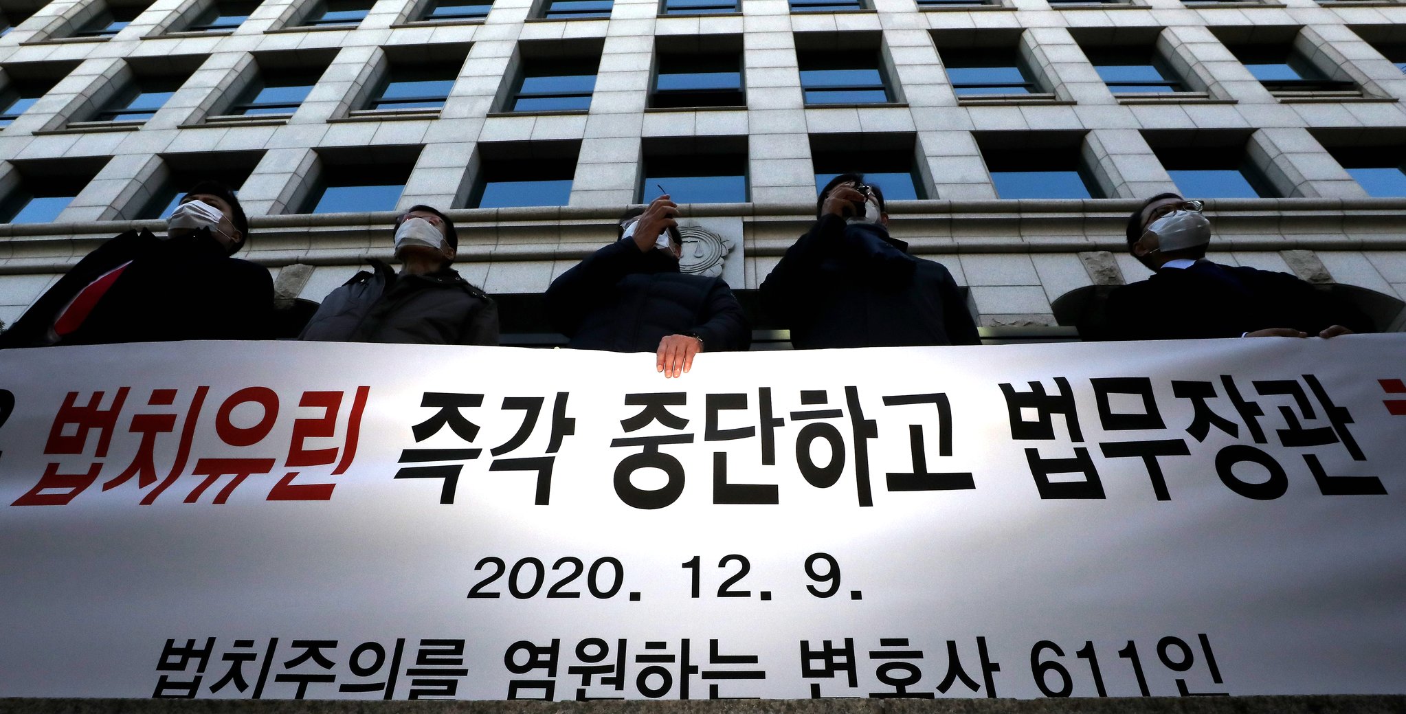 전직 대법관과 검찰총장 등을 포함한 변호사 600여 명이 윤석열 검찰총장을 징계한 추미애 법무부 장관의 해임을 촉구했다.