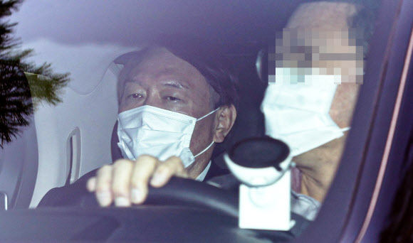 법무부 검사징계위원회를 하루 앞둔 9일 윤석열 검찰총장이 차량을 타고 서울 서초구 대검찰청 주차장을 나서고 있다. 연합뉴스 |