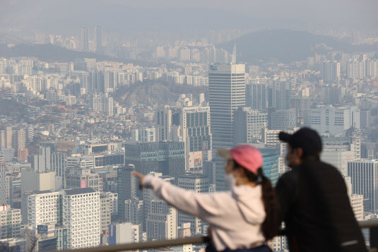 지난 6일 오후 서울 남산에서 바라본 도심에 옅은 미세먼지가 깔려있다.(사진=연합뉴스) |