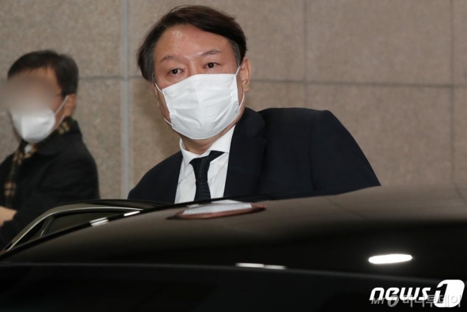 (서울=뉴스1) 민경석 기자 = 윤석열 검찰총장이 10일 저녁 서울 서초구 서울성모병원 장례식장에서 지인의 조문을 마친 뒤 장례식장을 나서고 있다. 2020.12.10/뉴스1 |