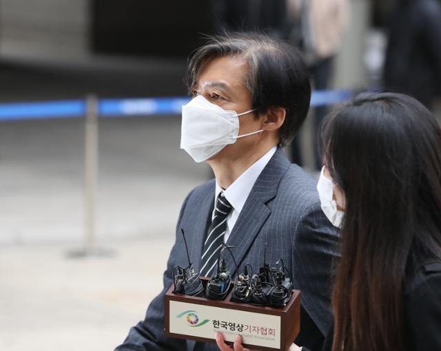 조국 전 법무부장관이 지난달 20일 공판에 출석하기 위해 서울 서초구 서울중앙지방법원으로 들어서고 있다. 뉴시스 |