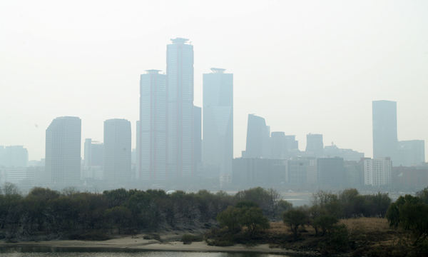 11일 서울 서강대교에서 바라본 여의도 일대가 뿌옇다. 연합뉴스 |