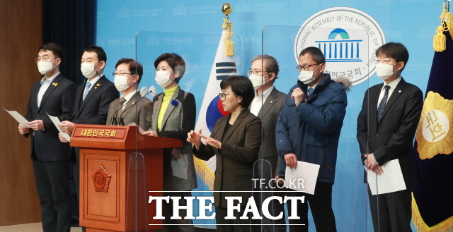 이날 회견엔 법사위 여당 간사인 백혜련 의원과 박주민·최기상·김용민·김남국·송기헌·박범계 의원이 참석했다.