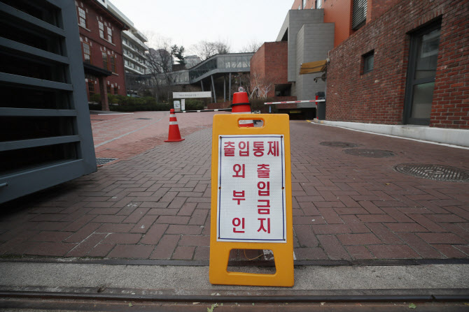 신종 코로나바이러스감염증(코로나19) 확산을 막기 위한 서울 시내 중·고등학교 원격 수업 전환 첫날인 지난 7일 서울 종로구의 한 고등학교 교문에 출입금지 표지판이 세워져 있다.(사진=연합뉴스) |