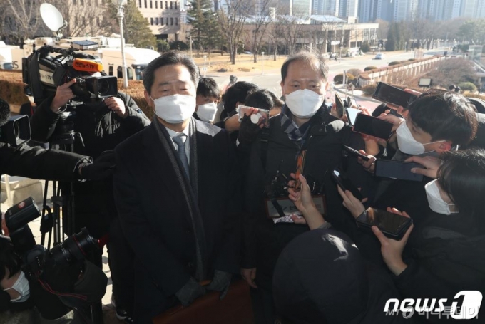 (과천=뉴스1) 안은나 기자 = 윤석열 검찰총장 측 특별변호인 이완규 변호사(오른쪽)와 이석웅 변호사가 15일 정부과천청사 법무부에서 열린 윤 총장에 대한 검사징계위원회 2차 심의에 참석하고 있다. 2020.12.15/뉴스1 |