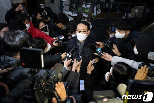 정한중 검사징계위원장 직무대리(한국외대 법학전문대학원 교수)가 16일 새벽 경기 정부과천청사 법무부에서 윤석열 검찰총장에 대한 검사징계위원회 2차 심의를 마친 후 청사를 나서며 취재진 질문에 답하고 있다. 법무부 검사징계위원회는 약 17시간여 윤석열 검찰총장에 대한 2차 심의를 거친 끝에 '정직 2개월'을 의결했다. /사진=뉴스1. |