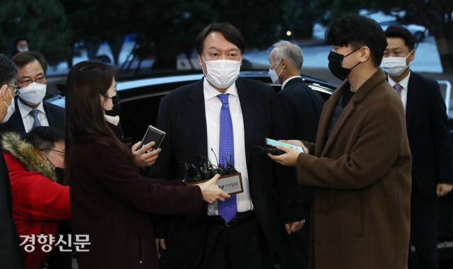 추미애 법무부 장관의 직무 배제 결정으로 출근하지 못했던 윤석열 검찰총장이 지난 1일 오후 서울 서초구 서초동 대검찰청으로 출근하고 있다. 김기남 기자 kknphoto@kyunghyang.com |