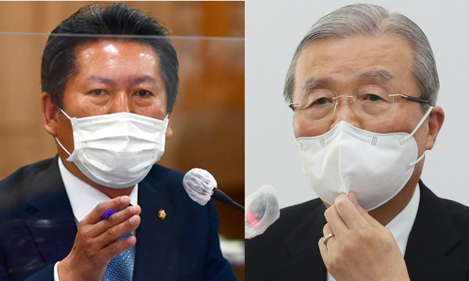 정청래 더불어민주당 의원(왼쪽).김종인 국민의힘 비대위원장(오른쪽) 뉴시스 |