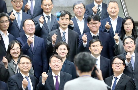 윤석열 검찰총장이 지난 10월 29일 오후 대전 고등검찰청·지방검찰청을 방문, 일선 검사들과 간담회를 마치고 대전 검사들과 기념촬영하고 있다. 뉴스1 |