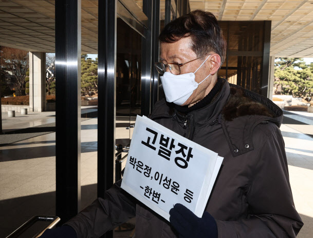 한반도 인권과 평화를 위한 변호사모임(한변) 김태훈 변호사가 지난 14일 오후 서울고등검찰청에서 박은정 법무부 감찰담당관, 이성윤 서울중앙지검장에 대한 고발장을 제출하고 있다.(사진=연합뉴스) |