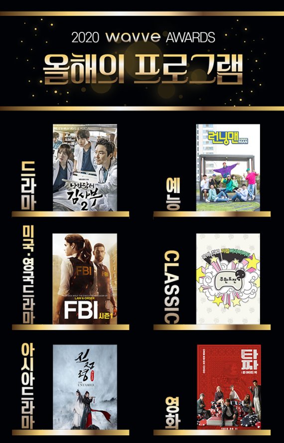한편 웨이브는 오는 23일부터 이용자들이 올해의 인기작을 모아볼 수 있도록 ‘2020 웨이브어워즈’ 특별전을 진행할 예정이다.