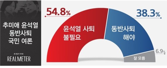 여론조사 전문기관 리얼미터가 YTN 의뢰로 지난 18일 전국 18세 이상 남녀 500명을 조사한 결과 54.8%가 "윤 총장 사퇴가 불필요하다"고 답했다.
