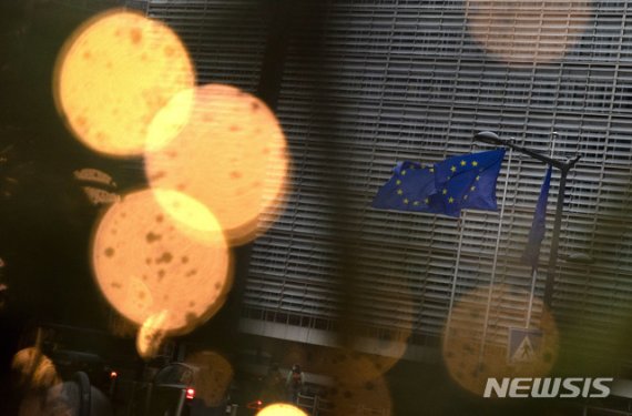 23일(현지시간) 벨기에 브뤼셀의 유럽연합(EU) 본부 앞에 유럽연합기가 흔들리고 있다. 사진=뉴시스 |