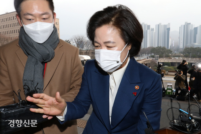 윤석열 검찰총장에 대한 징계위원회 1차 심문이 열린 지난 10일 추미애 법무부 장관이 법무부 청사로 들어서고 있다. 권호욱 선임기자 |