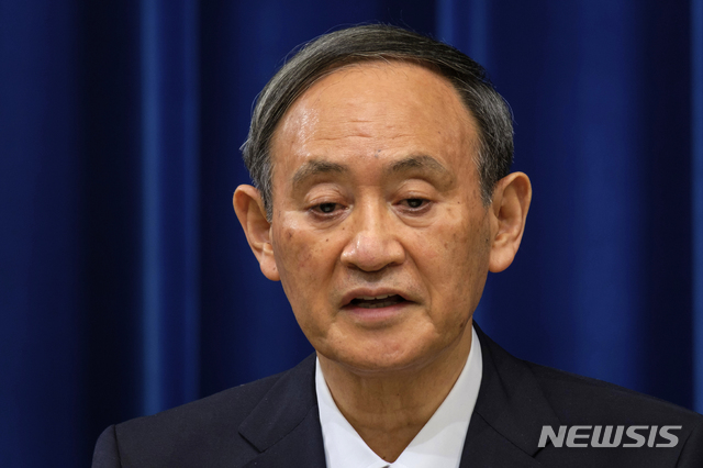 [도쿄=AP/뉴시스]지난 25일 스가 요시히데 일본 총리가 총리 관저에서 기자회견을 가지고 있다. 2020.12.28. |