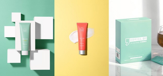 쿨슬림, 핫슬림은 EWG 올그린 평가를 받은 슬리밍 크림으로 쿨슬림은 시원한 청량감으로, 핫슬림은 은은한 열감과 함께 끈적임 없이 붓기케어와 피부 보습을 돕는다. 내몸에쉼표 콤마는 피로회복과 붓기케어에 도움을 주는 이너뷰티 에너지 음료다.