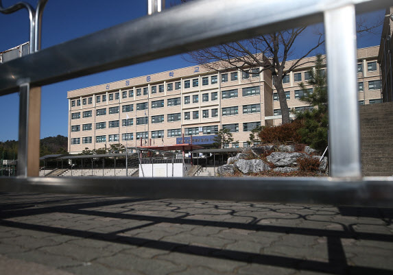 지난 9일 신종 코로나바이러스 감염증(코로나19) 확진 판정을 받아 등교가 중지된 울산시 남구 한 중학교에 적막감이 감돌고 있다. (사진=연합뉴스) |