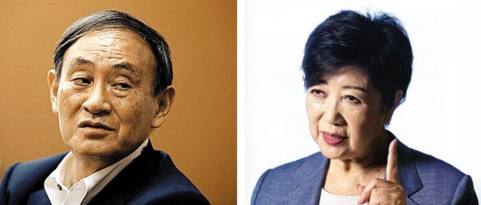 일본 정계에서 스가와 고이케는 견원지간(犬猿之間)으로 널리 알려져 있다. 스가는 고이케가 2016년 자민당을 탈당하고 무소속으로 도지사 선거에 출마하자 그를 “(퍼포먼스를 앞세운) 극장형 인간에게 도쿄 도정을 맡겨서는 안 된다”고 강하게 비난했다. 고이케가 2017년 ‘희망의 당’을 만들어 중의원 선거에 뛰어들자 아베 정권의 2인자로 관방장관을 맡고 있던 그는 고이케에 대한 경계감을 강화했다. 지난해 도쿄에서 코로나 환자가 급증하자 스가는 “이는 전적으로 도쿄 문제”라며 고이케를 몰아세웠고, 고이케는 아베 내각이 제대로 대응하지 못한다고 맞받아쳤다.