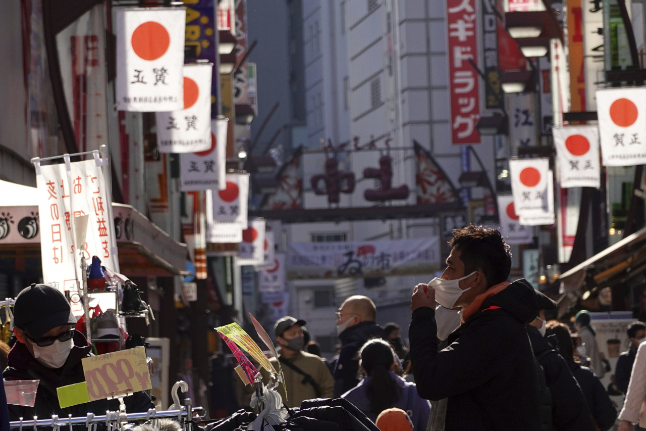 새해를 맞아 쇼핑에 나선 일본 시민들 대부분이 마스크를 쓴 채 3일 도쿄 번화가를 걸어가고 있다.[AP] |