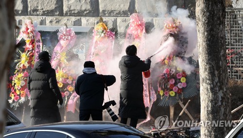 대검찰청 앞 '윤석열 응원 화환'에 방화 |