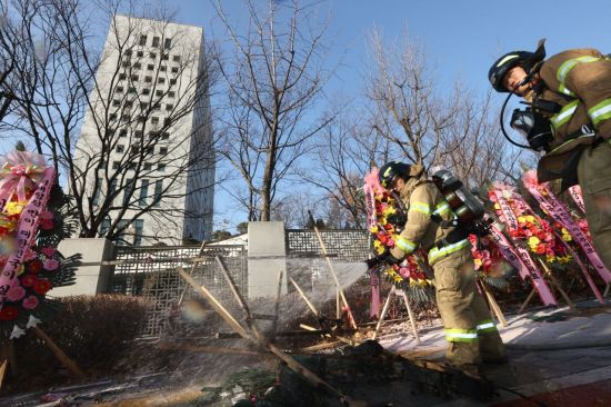 5일 소방당국에 따르면 서울 서초소방서는 이날 오전 9시 53분께 대검 앞 화환에 불이 붙었다는 신고를 받고 출동했다. 불은 화환 3~4개를 태운 뒤 진화됐다.