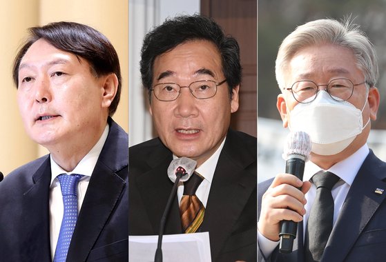 윤석열 검찰총장(맨 왼쪽), 이낙연 더불어민주당 대표(가운데), 이재명 경기도지사. 연합뉴스·뉴스1·뉴시스 |