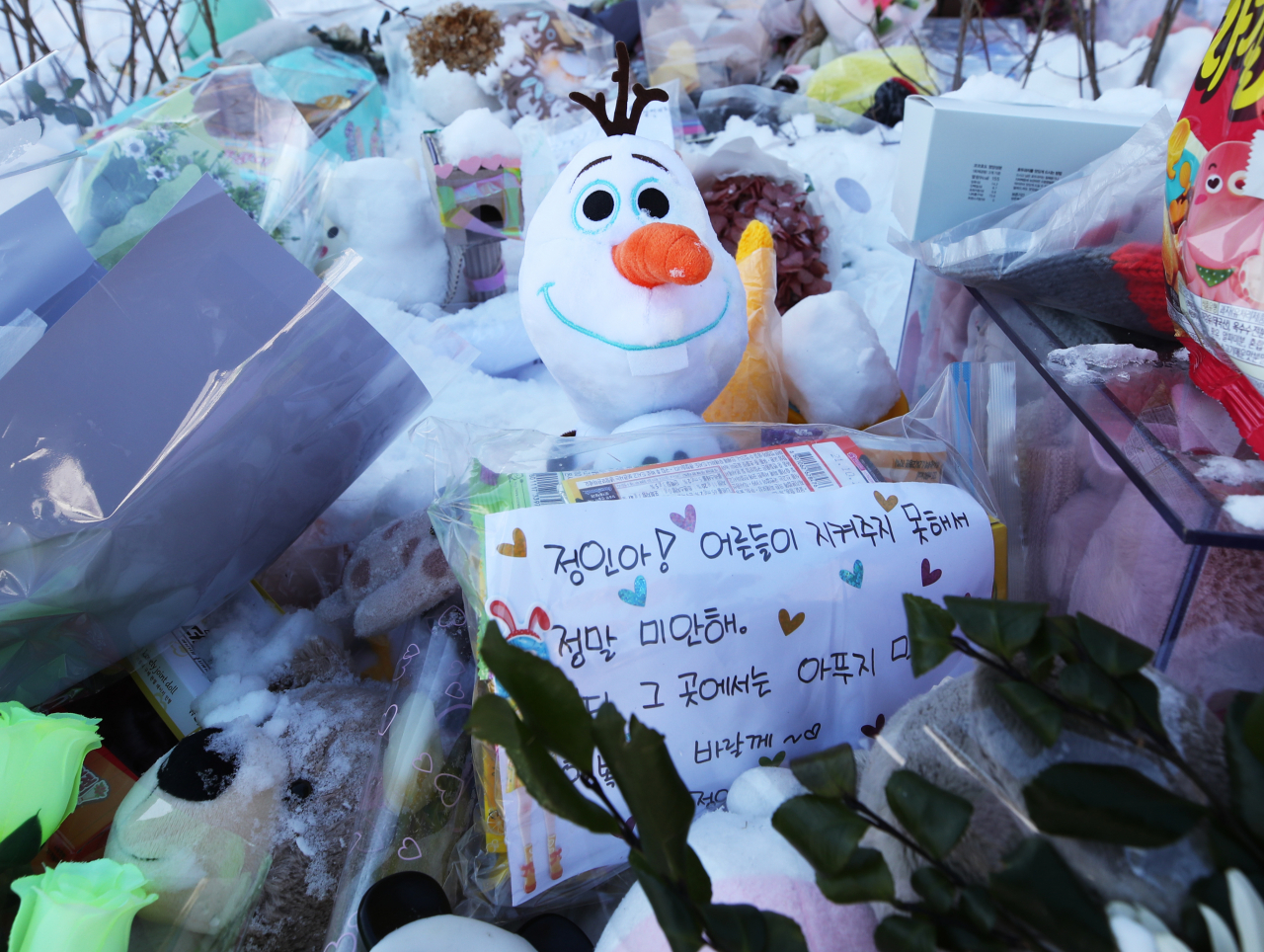 7일 경기도 양평군 하이패밀리 안데르센 공원묘원에 양부모의 학대로 생후 16개월 만에 사망한 정인 양을 추모하며 시민들이 적어 놓은 추모 메시지가 놓여 있다. [연합] |