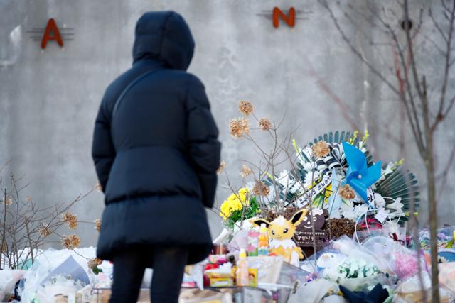 7일 경기 양평군 하이패밀리 안데르센 공원묘원을 찾은 추모객들이 양부모의 학대로 숨진 16개월 영아 정인(가명)양을 추모하고 있다. 뉴스 |