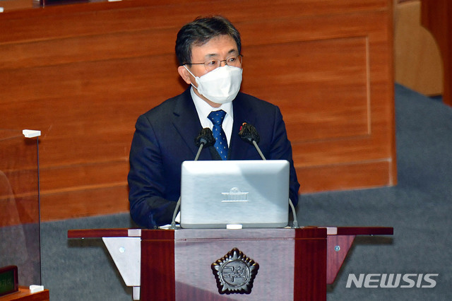 [서울=뉴시스]최동준 기자 = 권덕철 보건복지부 장관이 8일 서울 여의도 국회 본회의장에서 열린 코로나19로 인한 방역실태, 백신 수급 상황 및 접종 시기에 대한 긴급현안질문에서 질의에 답변을 하고 있다. (공동취재사진) 2021.01.08. photo@newsis.com |