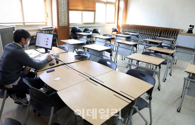 지난달 14일 인천시 부평구 인천외고에서 온라인 수업을 하고 있다.(사진=뉴시스) |