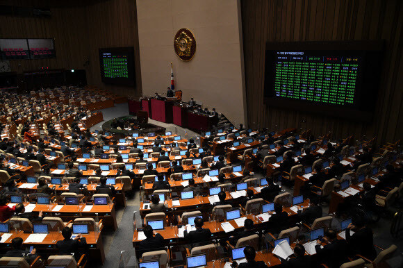 8일 오후 국회 본회의장 모습. 연합뉴스 |