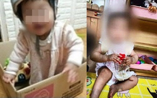 정인이가 입양가정에 보내지기 전(왼쪽)과 후에 극명하게 달라진 모습이 담긴 사진. (사진=온라인 커뮤니티 캡처) |