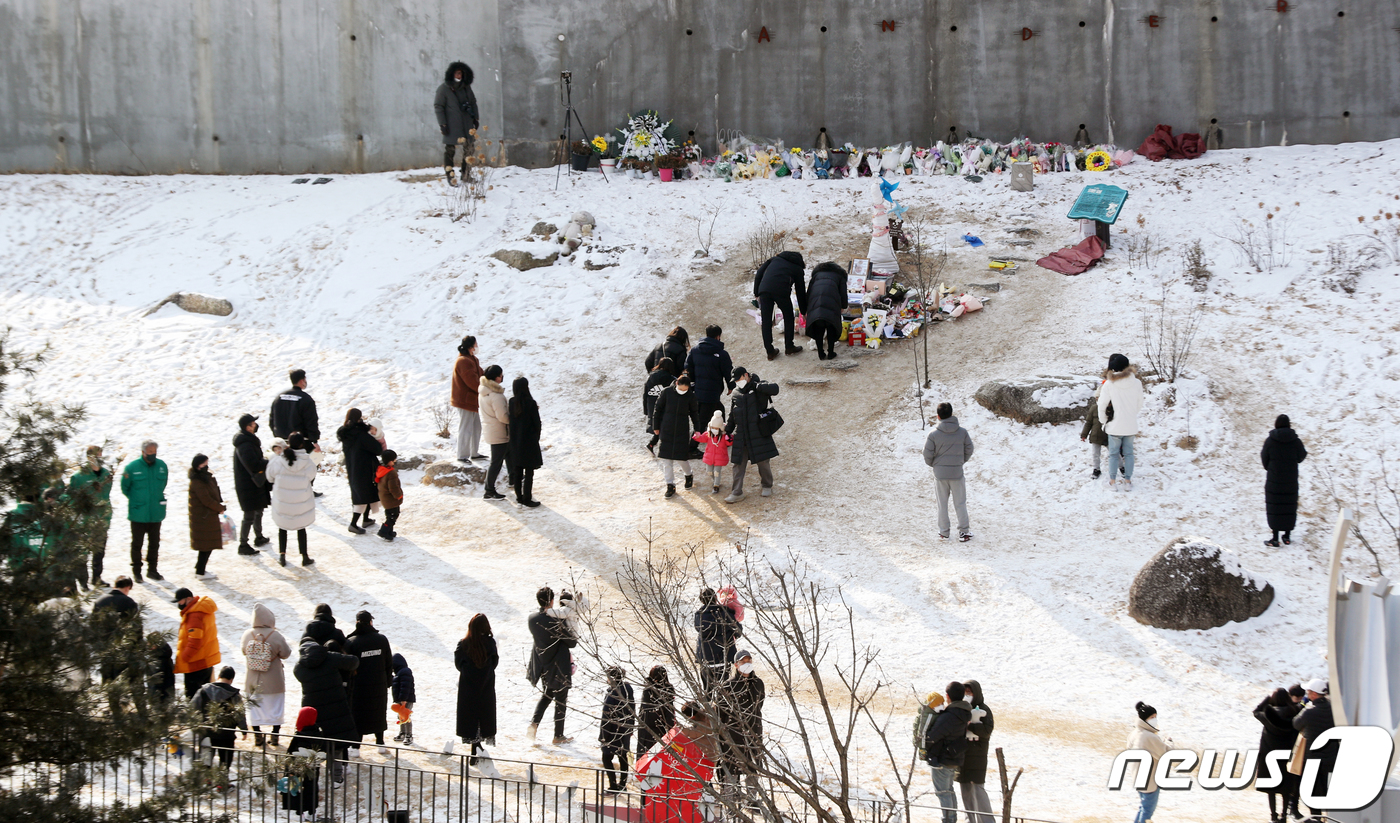 (양평=뉴스1) 황기선 기자 = 10일 오후 경기 양평 하이패밀리 안데르센 공원묘원에서 시민들이 양부모의 학대로 숨진 16개월 영아 정인(가명)양을 추모하기 위해 줄을 서 있다. 2021.1.10/뉴스1