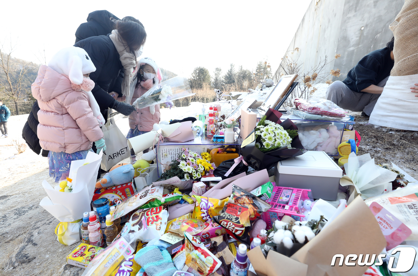 (양평=뉴스1) 황기선 기자 = 10일 오후 경기 양평 하이패밀리 안데르센 공원묘원에서 시민들이 양부모의 학대로 숨진 16개월 영아 정인(가명)양을 추모하고 있다. 2021.1.10/뉴스1