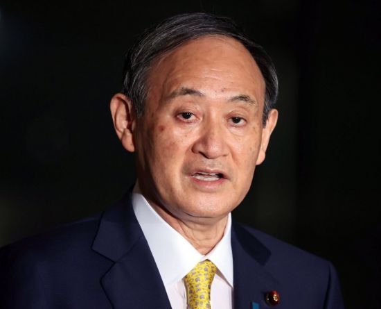 스가 요시히데 일본 총리가 8일 도쿄의 총리 관저에서 기자단과 문답을 하고 있다. 스가 총리는 한국 법원의 일본군 위안부 피해자 배상 판결에 대해 "결코 수용할 수 없다"고 밝혔다. [이미지출처=연합뉴스] |