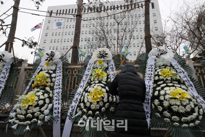 [포토]'정인이 사건' 남부지검 앞 설치되는 근조화환