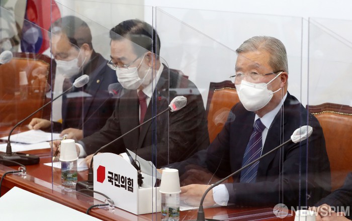 [서울=뉴스핌] 최상수 기자 = 김종인 국민의힘 비대위원장이 11일 오전 서울 여의도 국회에서 열린 비상대책위원회의에서 모두발언을 하고 있다. 2021.01.11 kilroy023@newspim.com