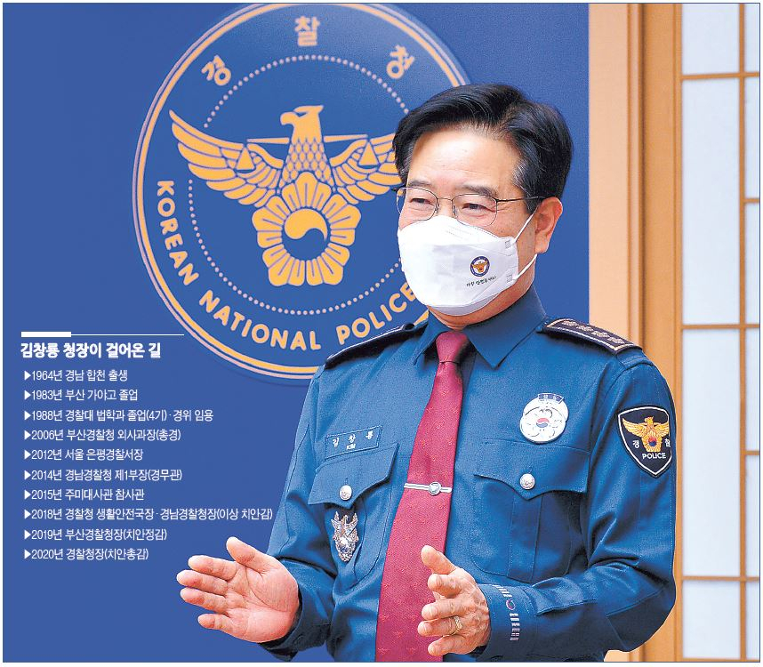 국가수사본부·자치경찰제가 시행되는 2021년은 75년 경찰 역사상 가장 큰 변화를 맞는 해다. ‘제2의 창경’을 진두지휘해야 할 김창룡 경찰청장은 취임 2년차 새해 벽두부터 위기를 맞았다. 양부모의 학대로 16개월 아이가 숨진 ‘정인이 사건’이 국민적 공분을 일으키면서 사태를 수습하고 국민 눈높이에 맞는 아동학대 대응책을 내놔야 하는 무거운 과제를 안게 됐다.
