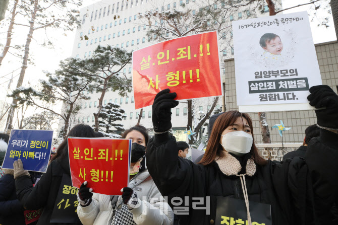 [포토]남부지법 앞에서 정인이 피의자에게 '살인죄'